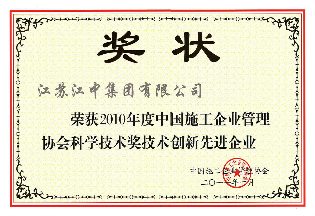 荣获中国施工企业管理协会科学技术创技术创新先进企业