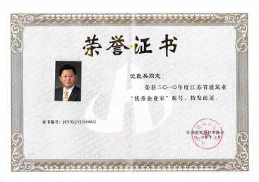 沈良兵主席荣获10年省建筑业“优秀企业家”称号