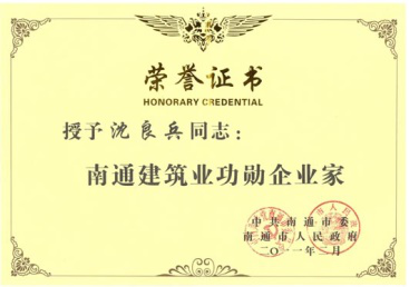 沈良兵主席荣获南通建筑业功勋企业家称号