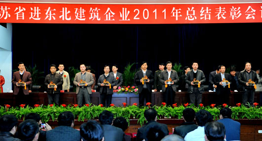 2012年4 月9日,江苏省进东北施工企业总结表彰大会在石油之城大庆市召开。我集团东北分公司荣获“2011年度江苏省进东北施工优秀企业”称号,王锦涛等5名项目负责人荣获“2011年度江苏省进东北施工优秀建造师”称号。 会议前,徐学军副厅长一行听取了我集团副董事长、东北分公司总经理马华的工作汇报。(东北分公司 胡小亮)