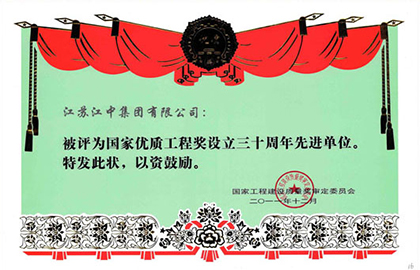 2011年12月27日,中施企协在北京人民大会堂举行“国家优质工程奖设立30周年纪念大会”。我集团荣获2011年国家优质工程奖30年先进单位、国家优质工程奖30年精品工程奖。​​
