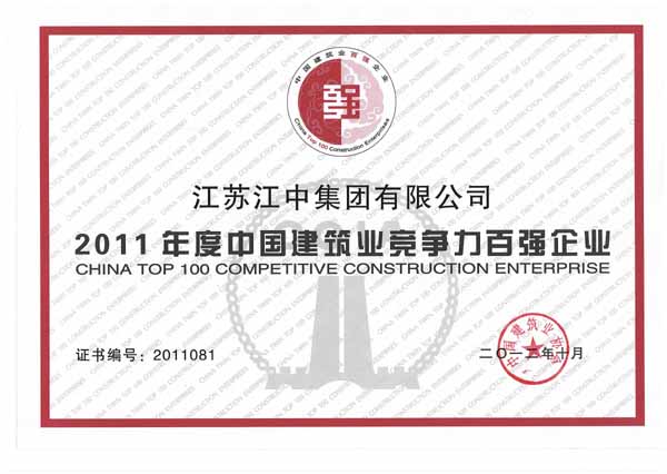 集团荣获2011年度中国建筑业企业竞争力百强企业