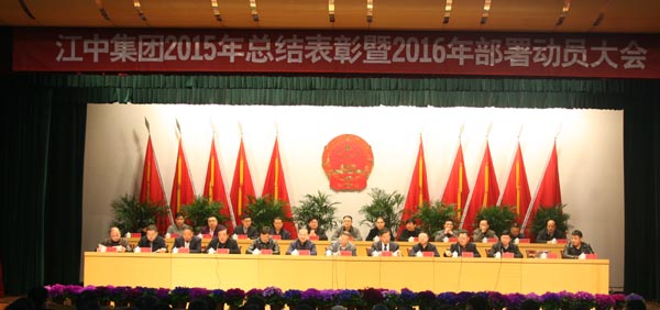 中共如皋市委常委、市纪委书记蔡忠作了讲话,他代表市委、市政府向江中集团长期以来为全市经济社会发展作的贡献表示衷心的感谢,向江中集团全体干部职工表示亲切的慰问。对2015年江中集团的发展做出了肯定,他强调,“十三五”期间,江中集团要瞄准“到‘十三五’期末年总产值突破250亿元,施工面积3000万平方米”的目标,把握新机遇,应对新挑战,全力推进房产销售,全力盘活企业运行资金,努力走出一条重转型、促升级的健康稳定发展之路,为全市建筑业目标任务的顺利实现作出新的更大的贡献。