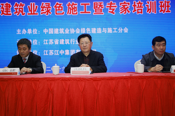 2016年26-27日,由中国建筑业协会绿色建造与施工分会主办、江苏省建筑业协会承办、江苏江中集团有限公司协办的全国绿色施工暨专家培训班,在无锡举行。集团董事长沈良兵应邀出席会议,并在主席台就坐。与会全体学员观摩了我集团施工的江阴澄星广场项目。集团总工程师、一公司总经理沈世祥为学员讲授了绿色施工相关知识。