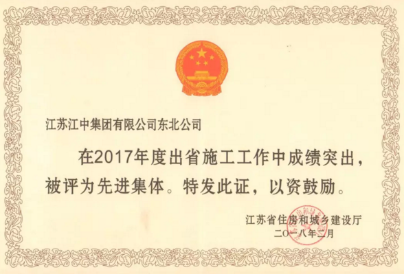 会上总结了2017年东北各建筑施工企业取得的业绩,宣读了《江苏省住房和城乡建设厅关于对2017年度江苏出省施工先进集体和先进个人予以表扬的通报》。我集团东北公司荣获了“2017年度江苏省出省施工先进集体”称号;马华、沈百胜、沈锋兵、吴开河四名同志荣获“2017年度江苏省出省施工先进个人”称号。