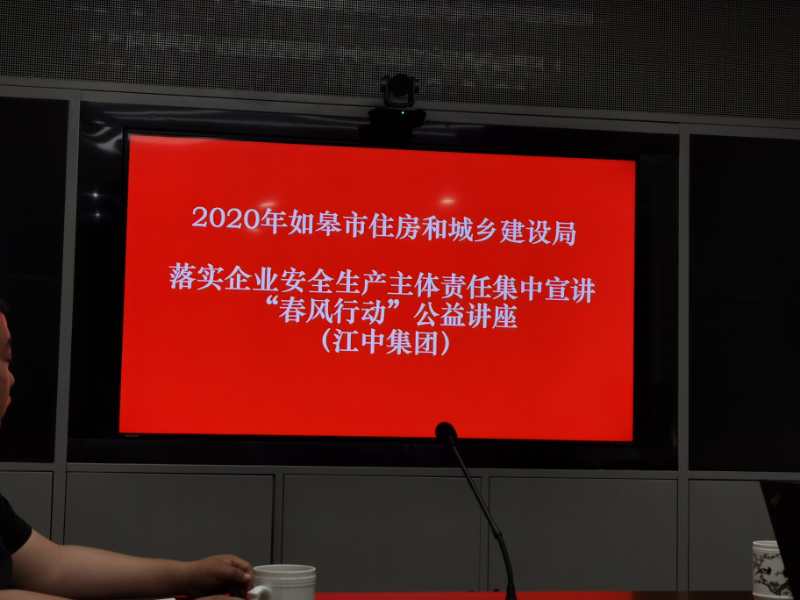 会议邀请了如皋市应急管理局主任张斌、科长殷建峰进行了企业安全生产主体责任相关知识培训,参与人员认真观看了由南京工业大学孙其衍教授讲课的《企业落实安全生产主体责任重点事项清单的视频》。